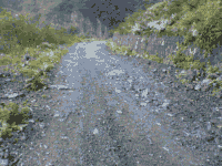 林道に入ると,このような感じで路面凹凸がある場所があります.