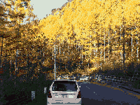夕方にここを通ったのですが,夕日が木々に当たり,黄金色に輝く紅葉が見事でした.