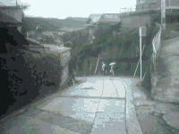 コンクリ特殊舗装の下り坂はまだ続きます.