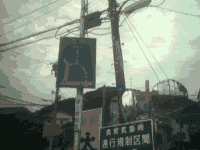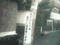ここも急坂で,下ってるクルマの前に飛び出してくる人がいると危険なので,それを防ぐ看板もあります.