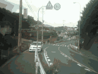 交差道路の傾き加減が急勾配さを物語っています.