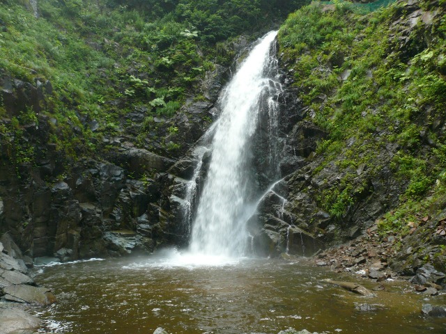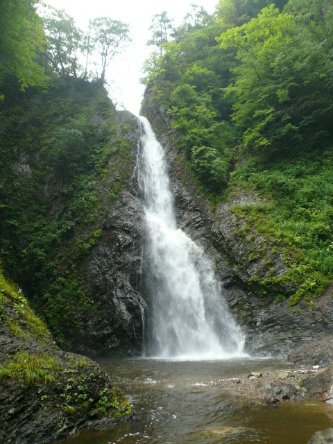 今回の白神山地旅行で,唯一世界遺産登録地域に入ることができた暗門の滝….