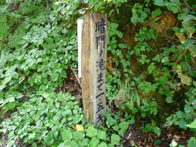 「暗門の滝まで500mの案内看板」まであと10分.