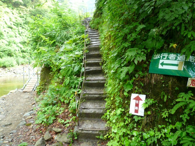行きの人は階段を上っていきます..