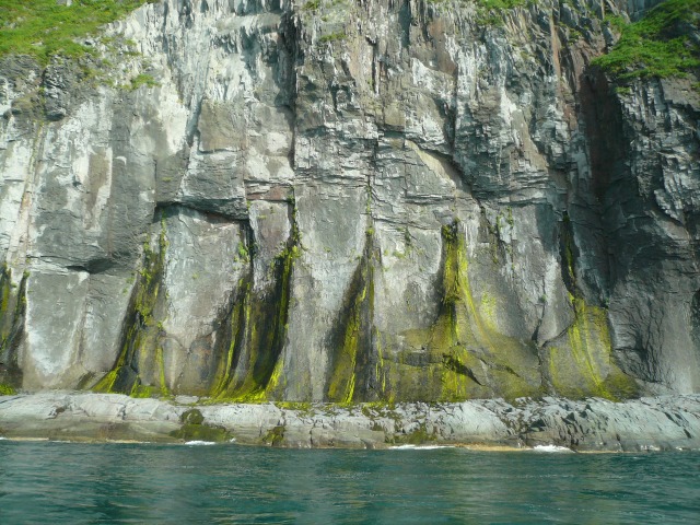 行きは右側が陸(断崖)側なので「左側は帰りにゆっくり見られるかな…」と思っていましたが,帰りは沖合を進むため断崖を間近で見ることはできません….