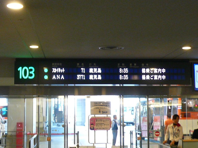 鹿児島空港は市内からかなり離れており,高速バスで1時間かかります