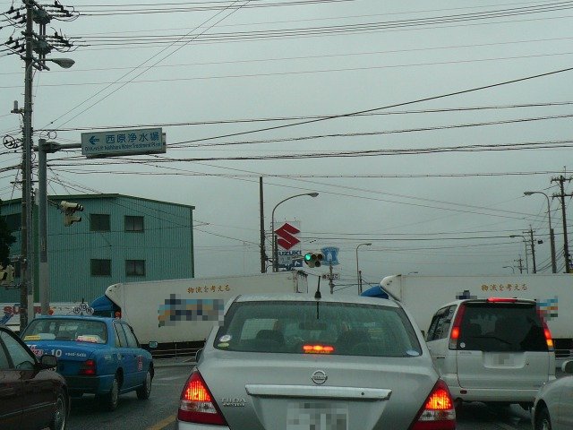 斎場御嶽に向かう途中,交差点でトラックが立ち往生…
