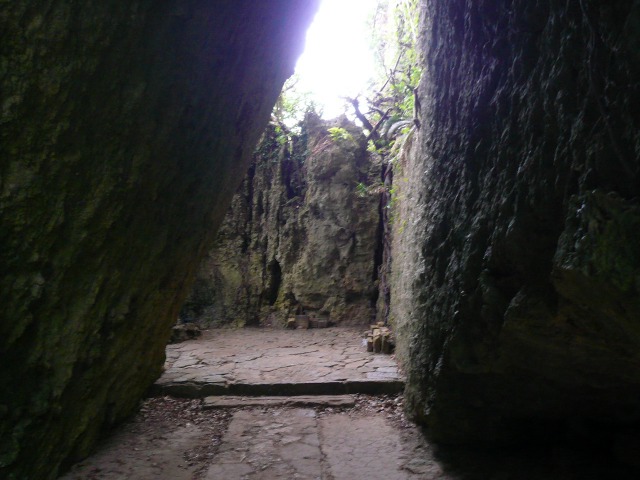 斎場御嶽のメインとなる場所で,三角形の洞門です