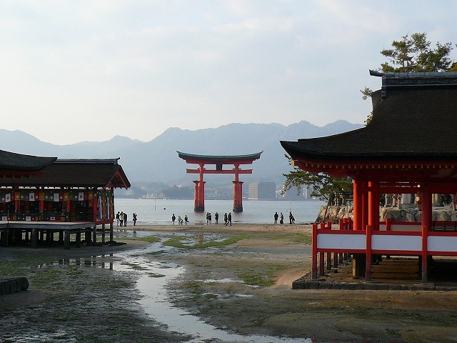 私が宮島に着いたときはまだ干潮でしたが、帰る頃にはすっかり満ちてきました。。