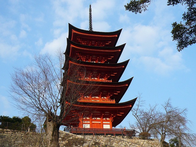 五重塔(ごじゅうのとう)と千畳閣(せんじょうかく)を見ながら厳島神社を後にします。