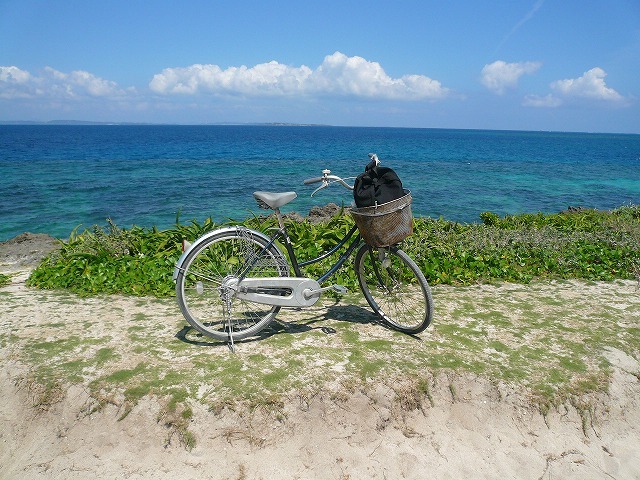 神々の島・久高島では暑さが堪えましたが,海も空も空気も綺麗で,神のパワーを受けながら気持ちのいいサイクリングができました.