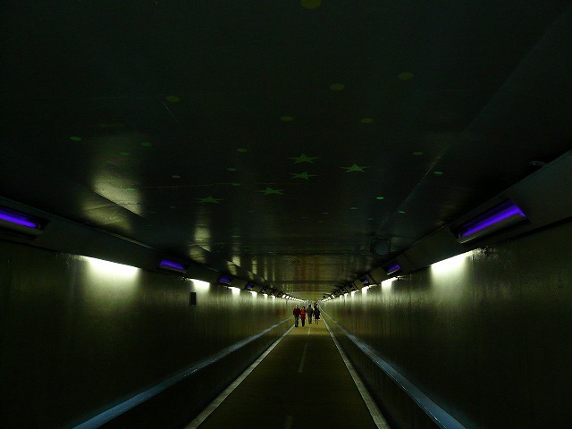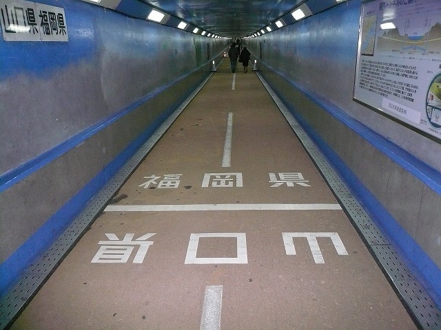 人も通れる(ただし車道と人道は別々)ということで関門トンネル経由で行くことにしました。
