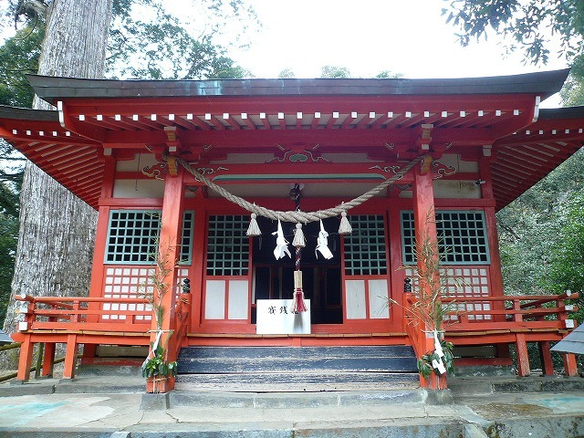 ドーンとそびえ立つ八村杉のそばにひっそりと佇む利根川神社。