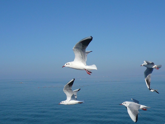カモメにエサをあげている人がいて、カモメの大群が押し寄せてきました(^^;